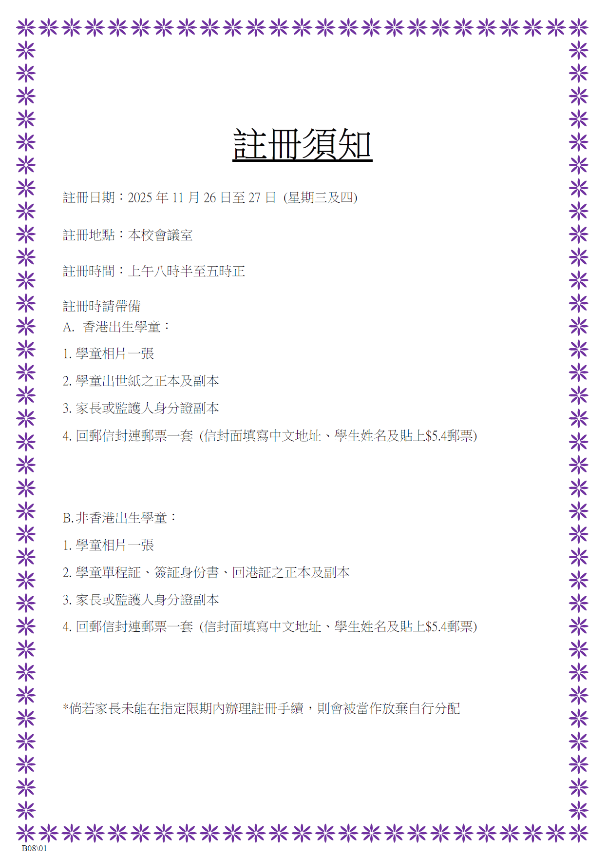 標點: 26-27 小一自行取錄名單 及 註冊須知