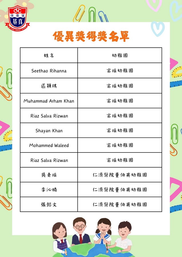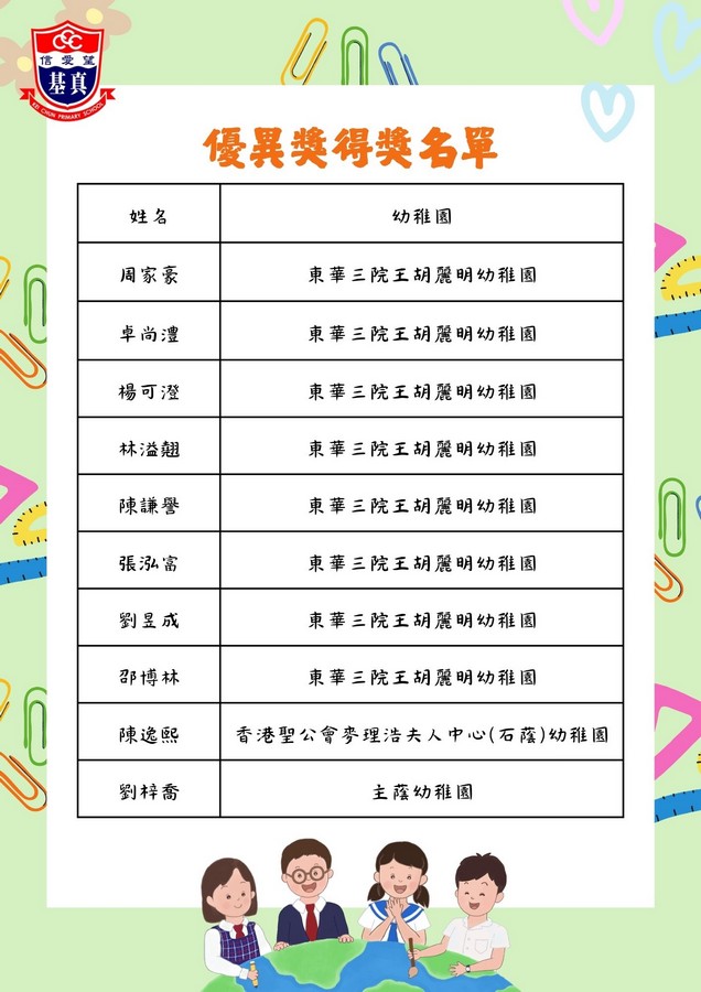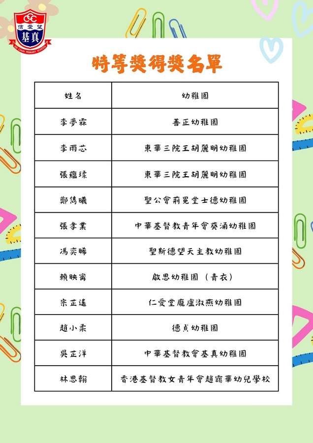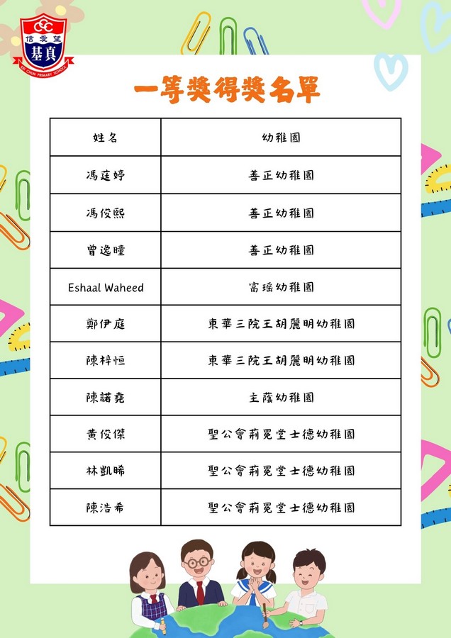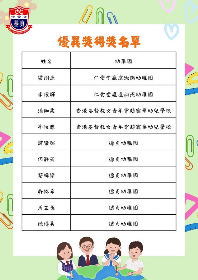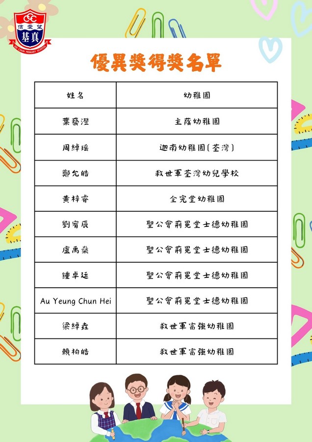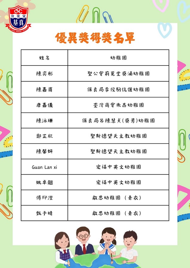 經過評審團的慎重討論,現正式公布各組別的獲獎名單。在此,我們向以上獲獎同學致以最熱烈的祝賀!👏證書及禮物將於五月底前送到各位小朋友就讀的幼稚園。
