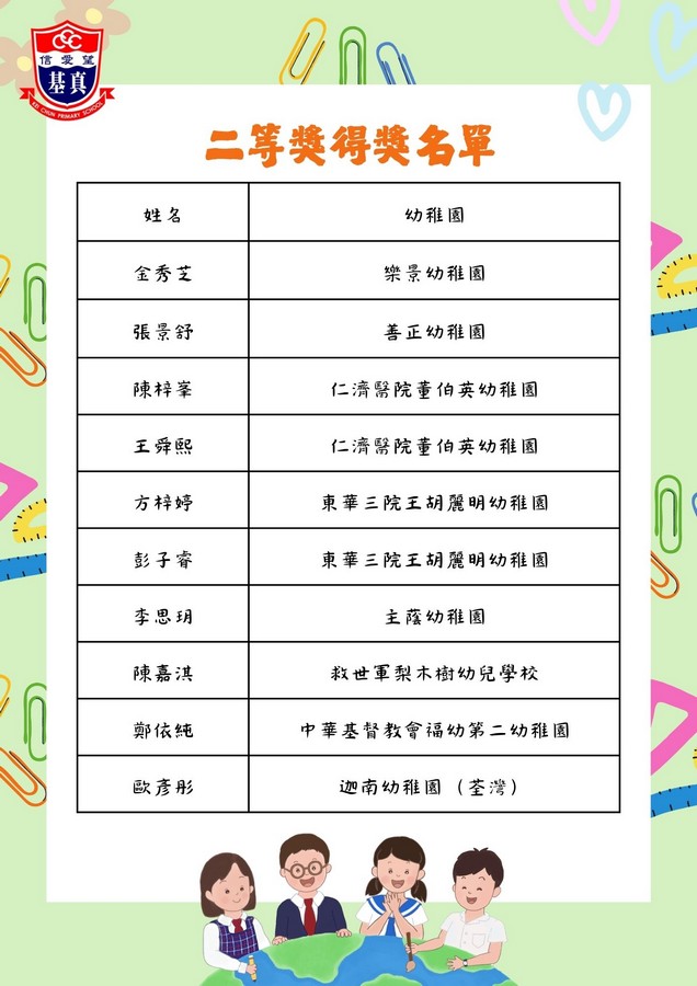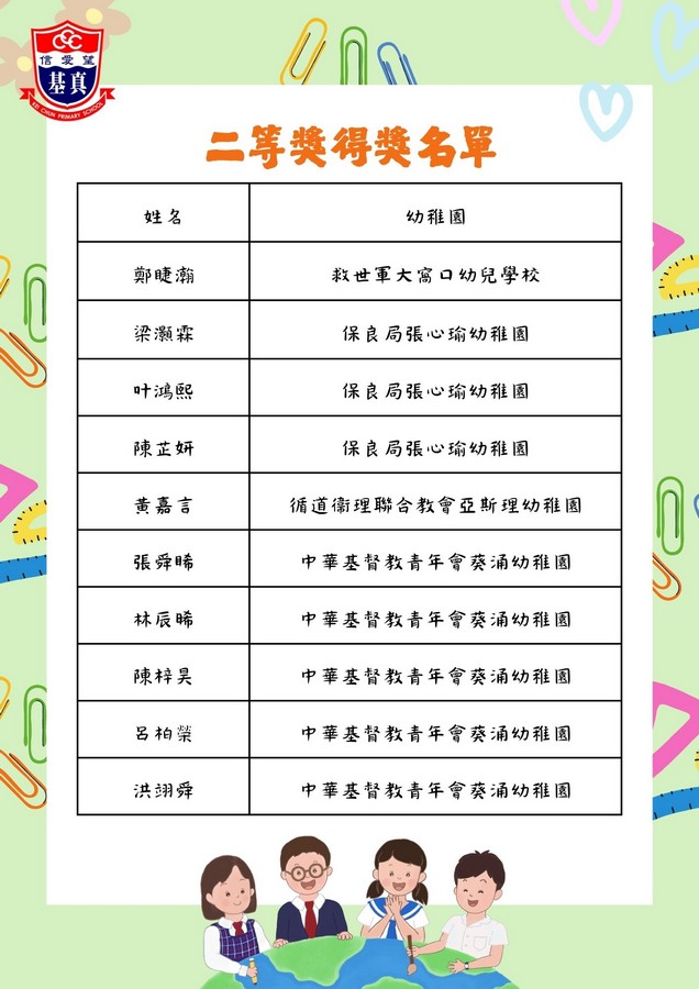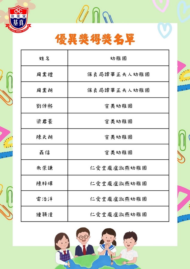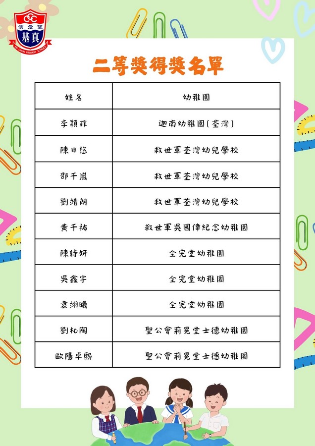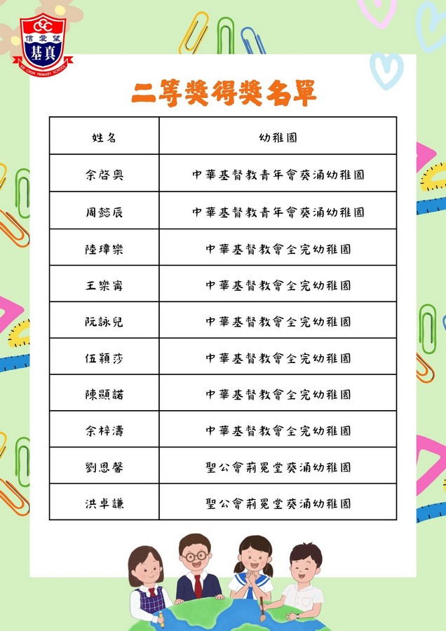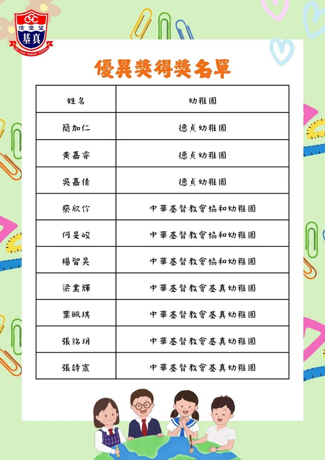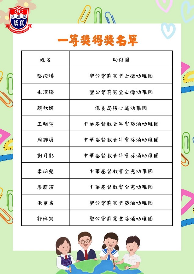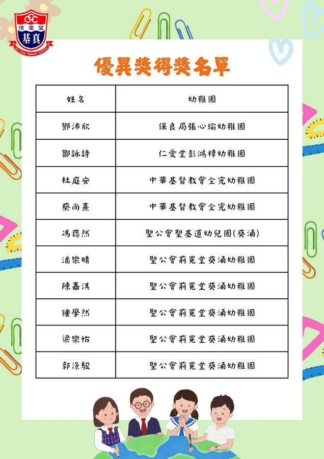 經過評審團的慎重討論,現正式公布各組別的獲獎名單。在此,我們向以上獲獎同學致以最熱烈的祝賀!👏證書及禮物將於五月底前送到各位小朋友就讀的幼稚園。