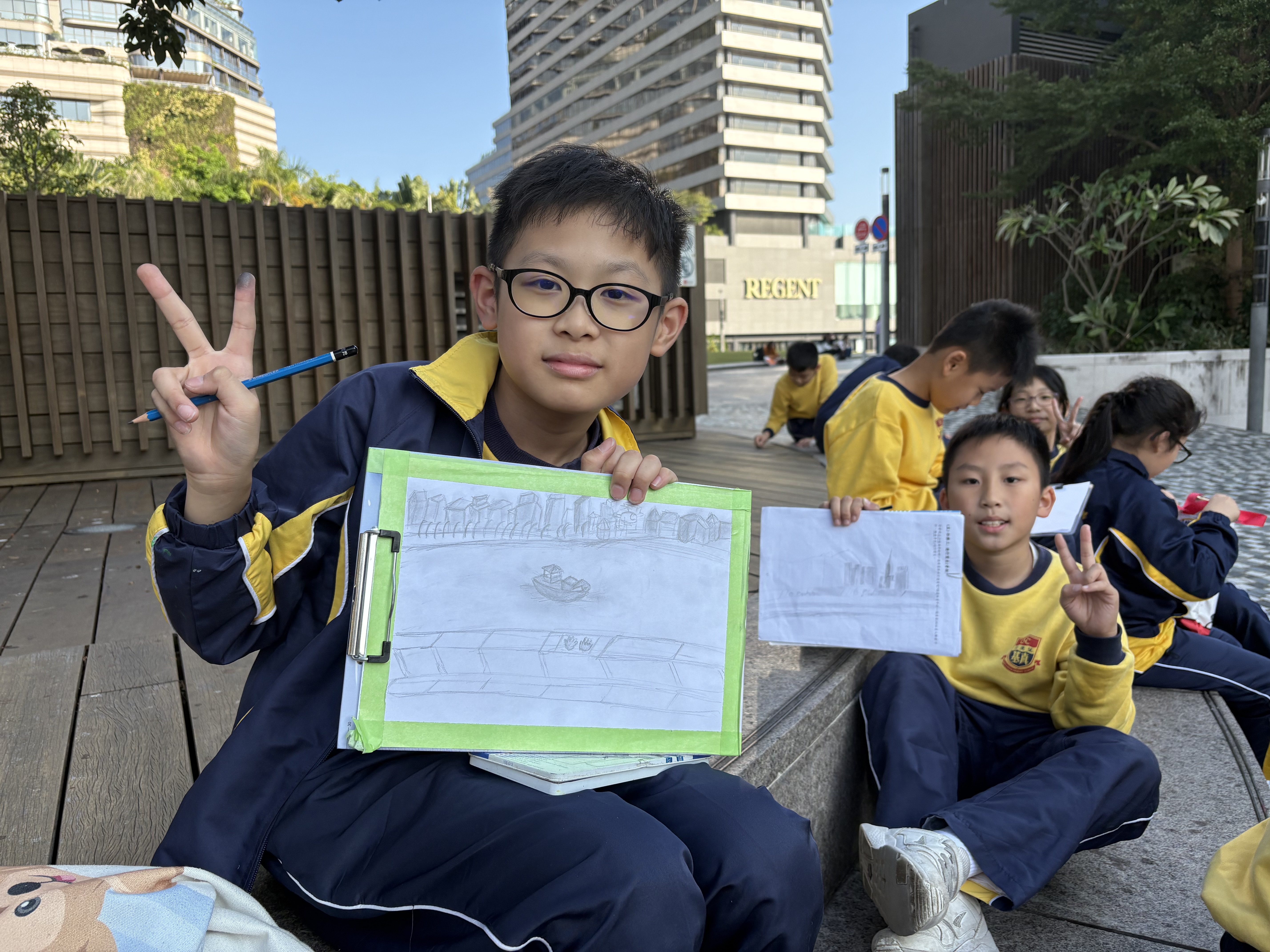 | (普通話科) 學生參與活動時非常投入,能夠有自信地進行訪問,獲得遊客讚賞 | (視藝科) 學生張尖沙咀海旁的美麗景色以素描作品記錄下來 |