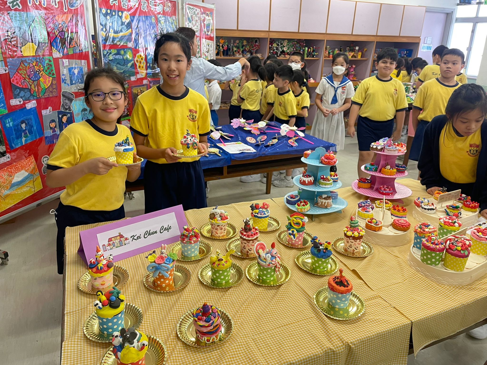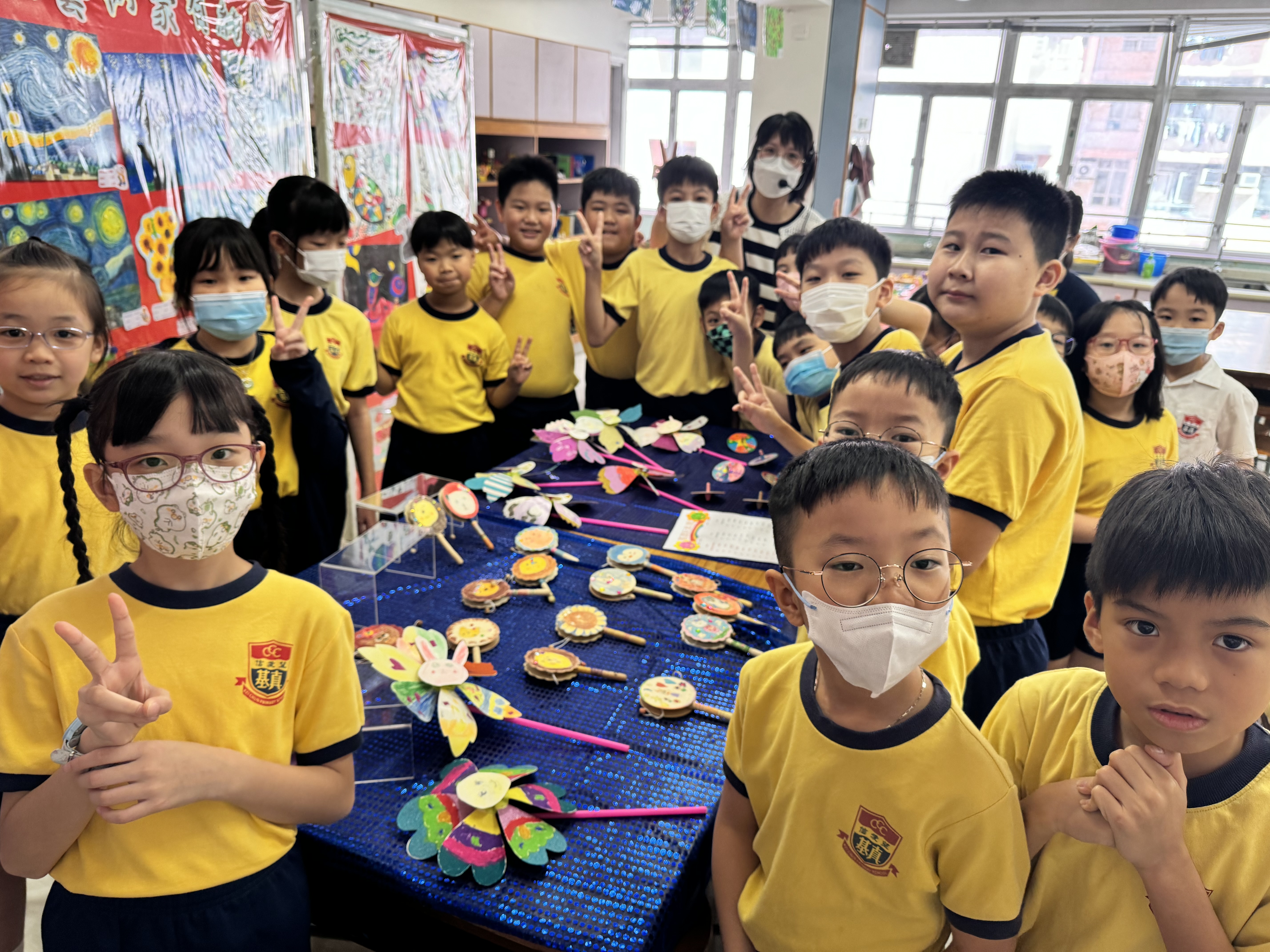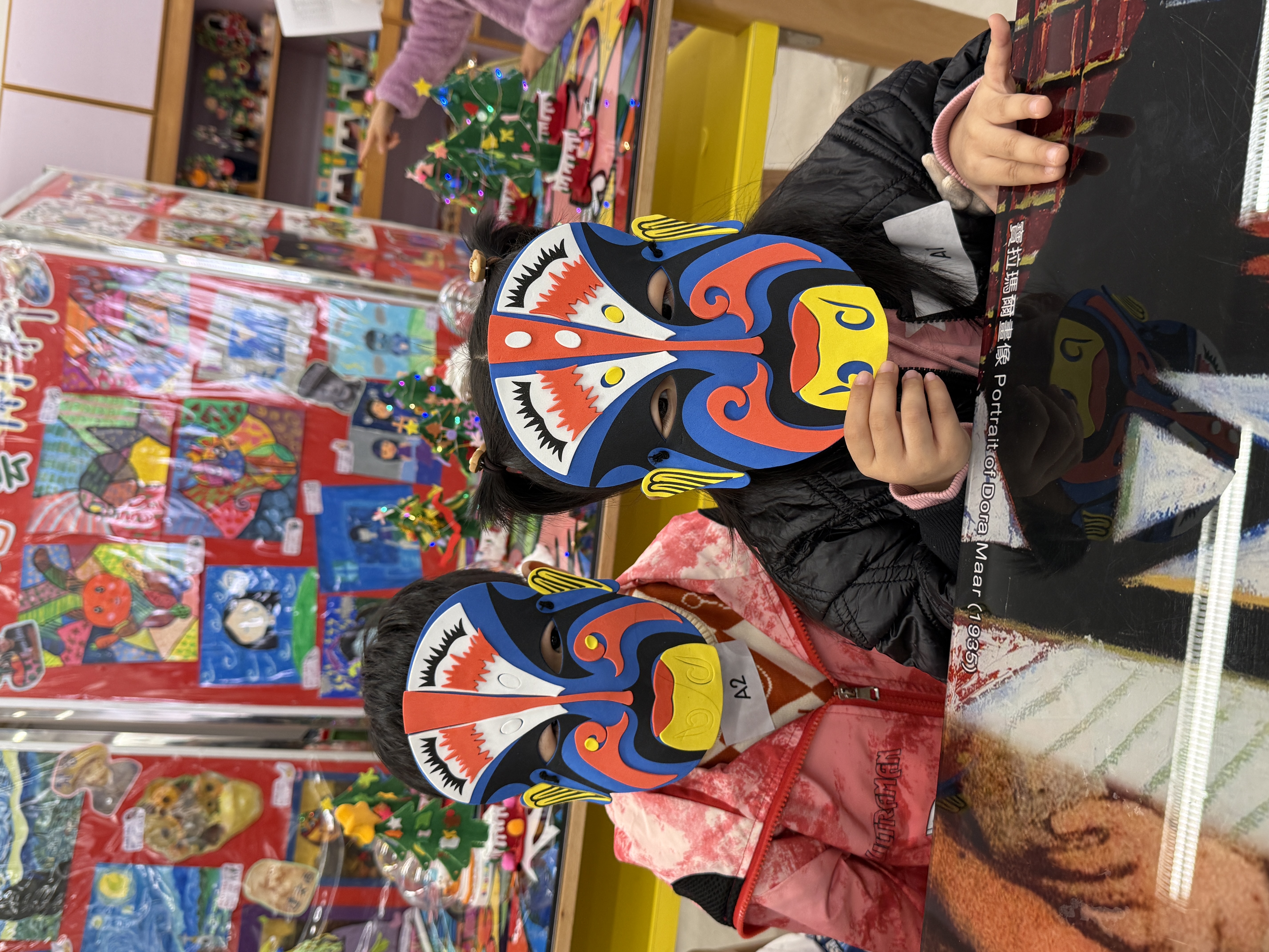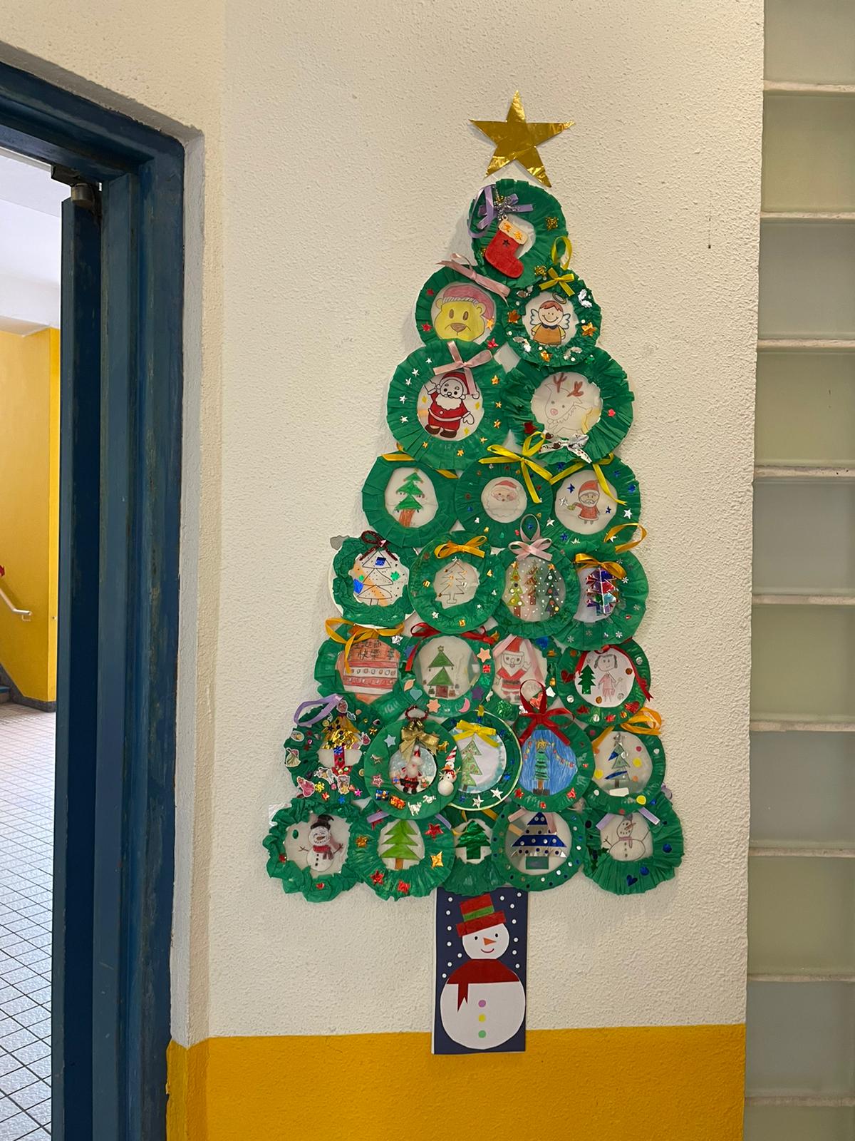 | 同學在基真同樂日中製作中國面譜 | 在視藝室內的聖誕作品展 |
