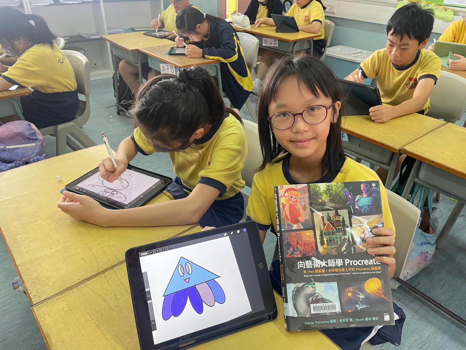 | 同學在體藝課中製作端午節掛飾 | 與圖書科協作,五年級學習電繪 |