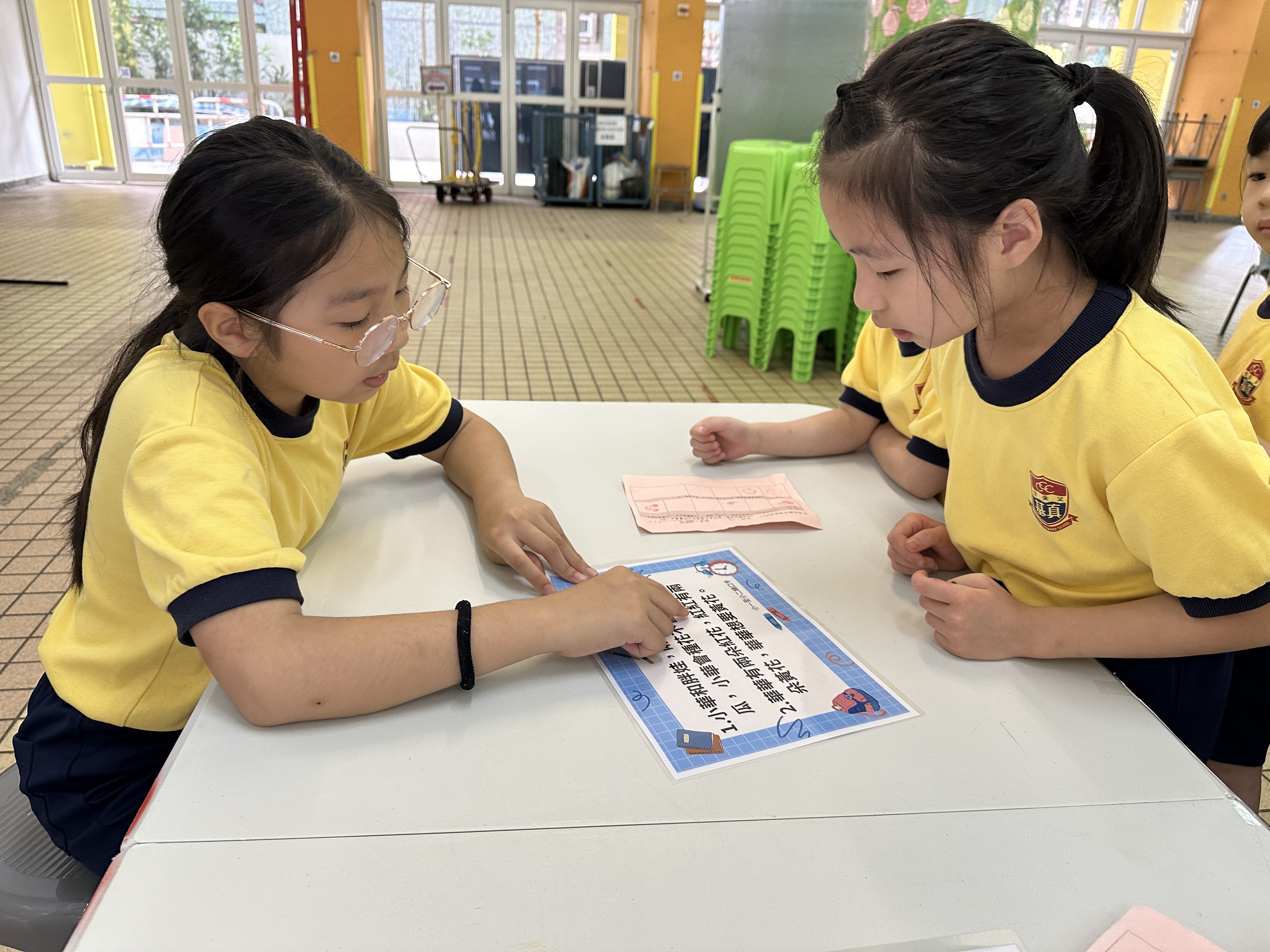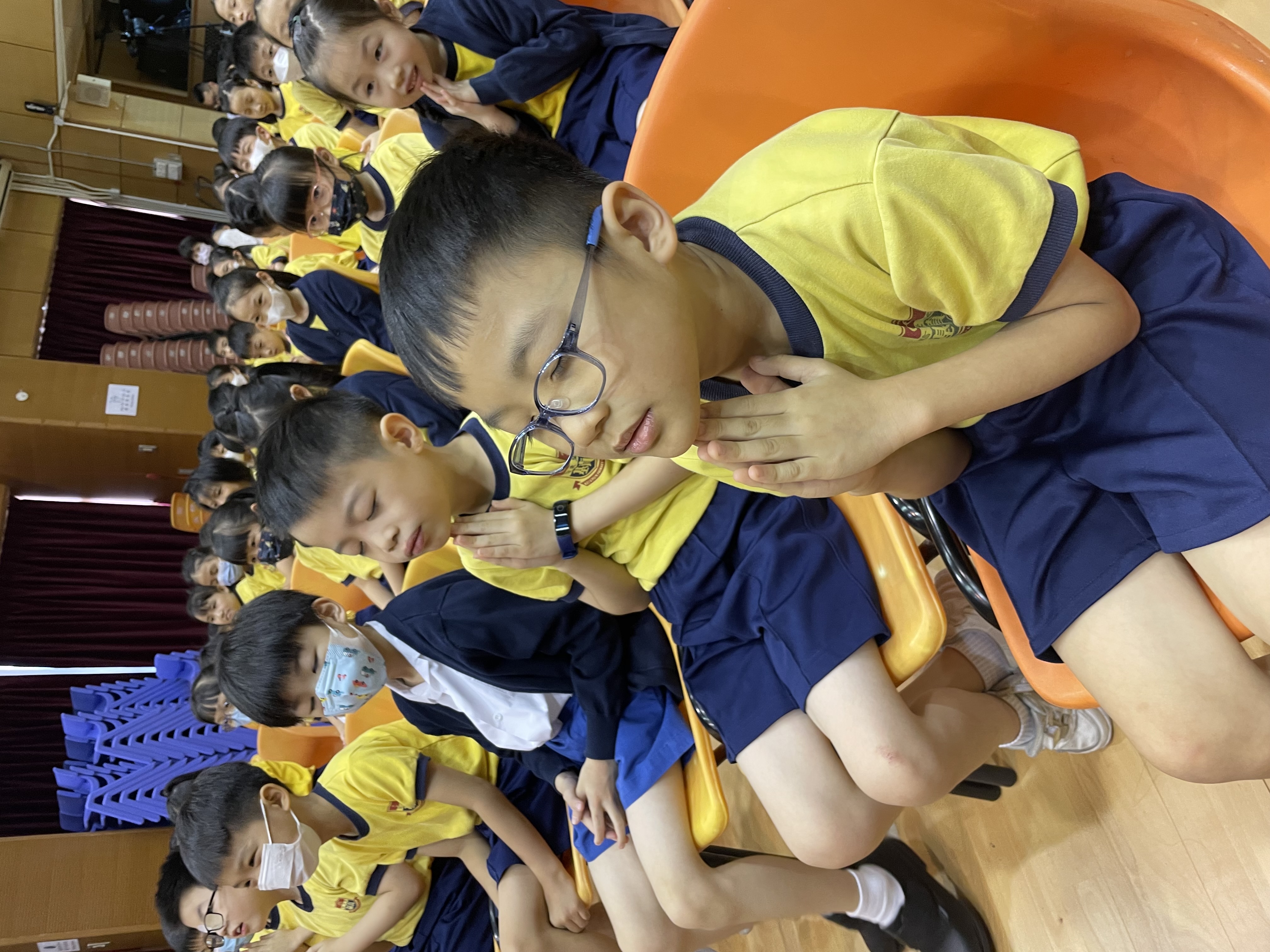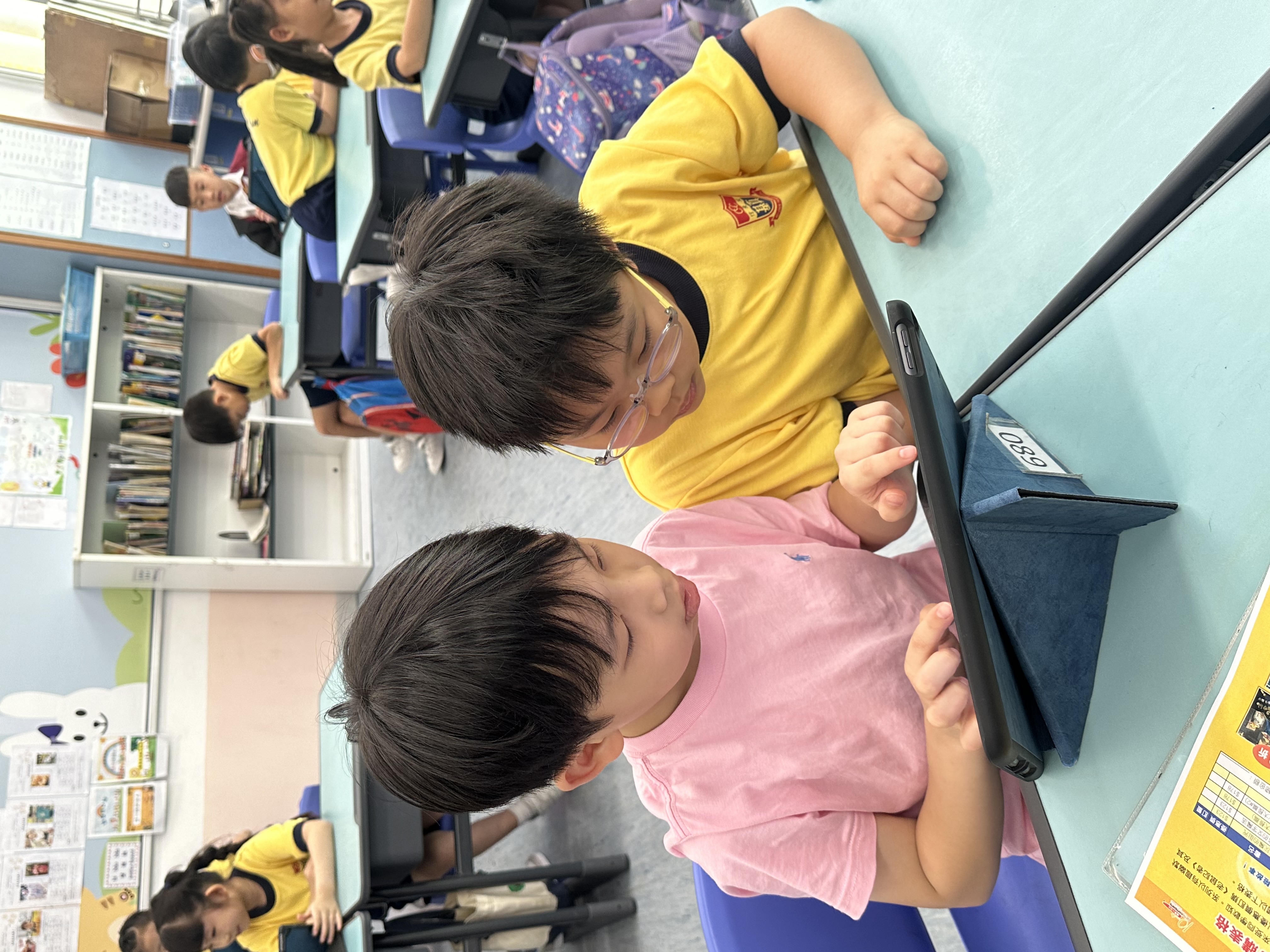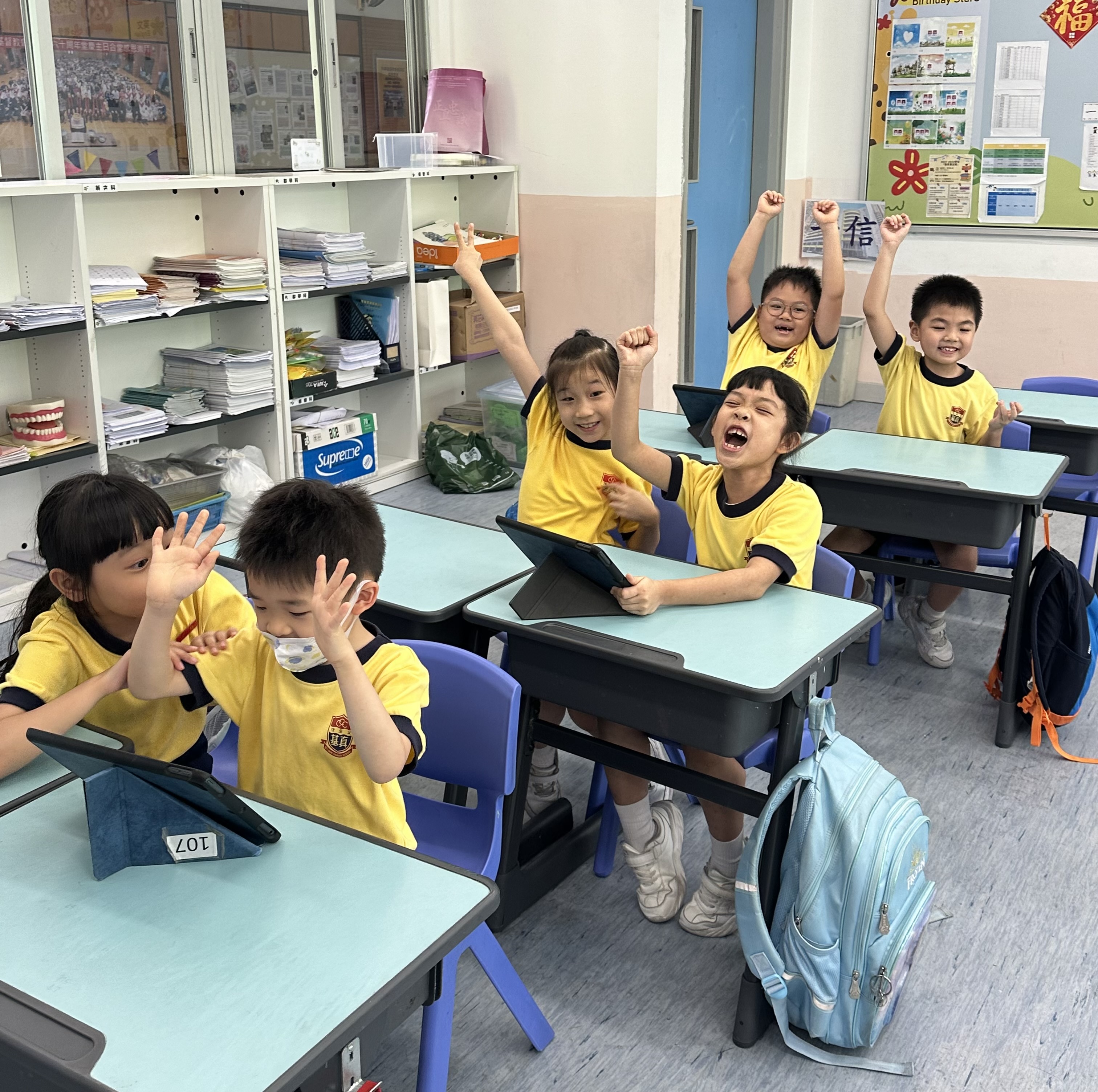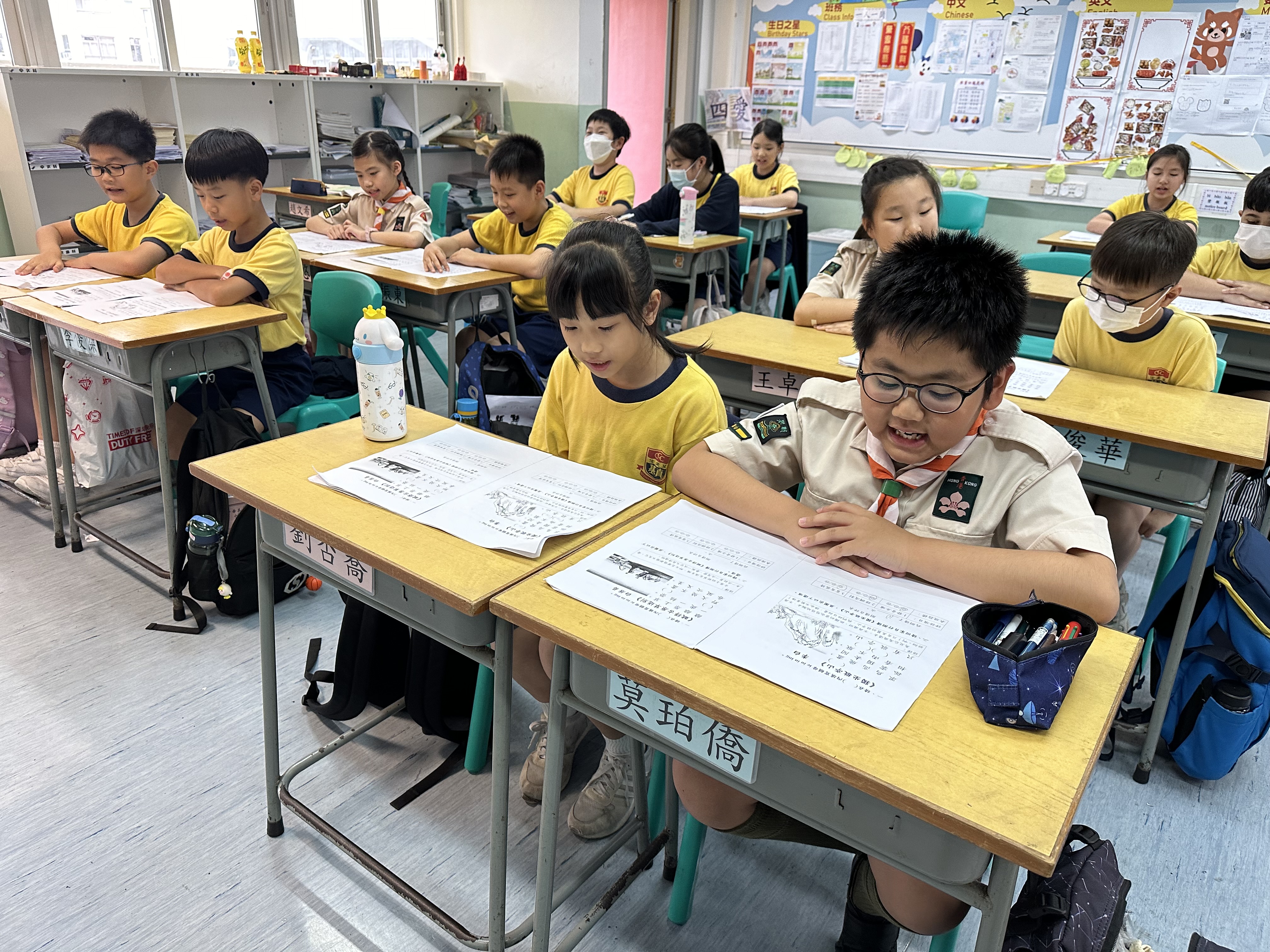 | 一年級的學生正在認真地進行中普問答比賽 | 我們答對了,真開心 |