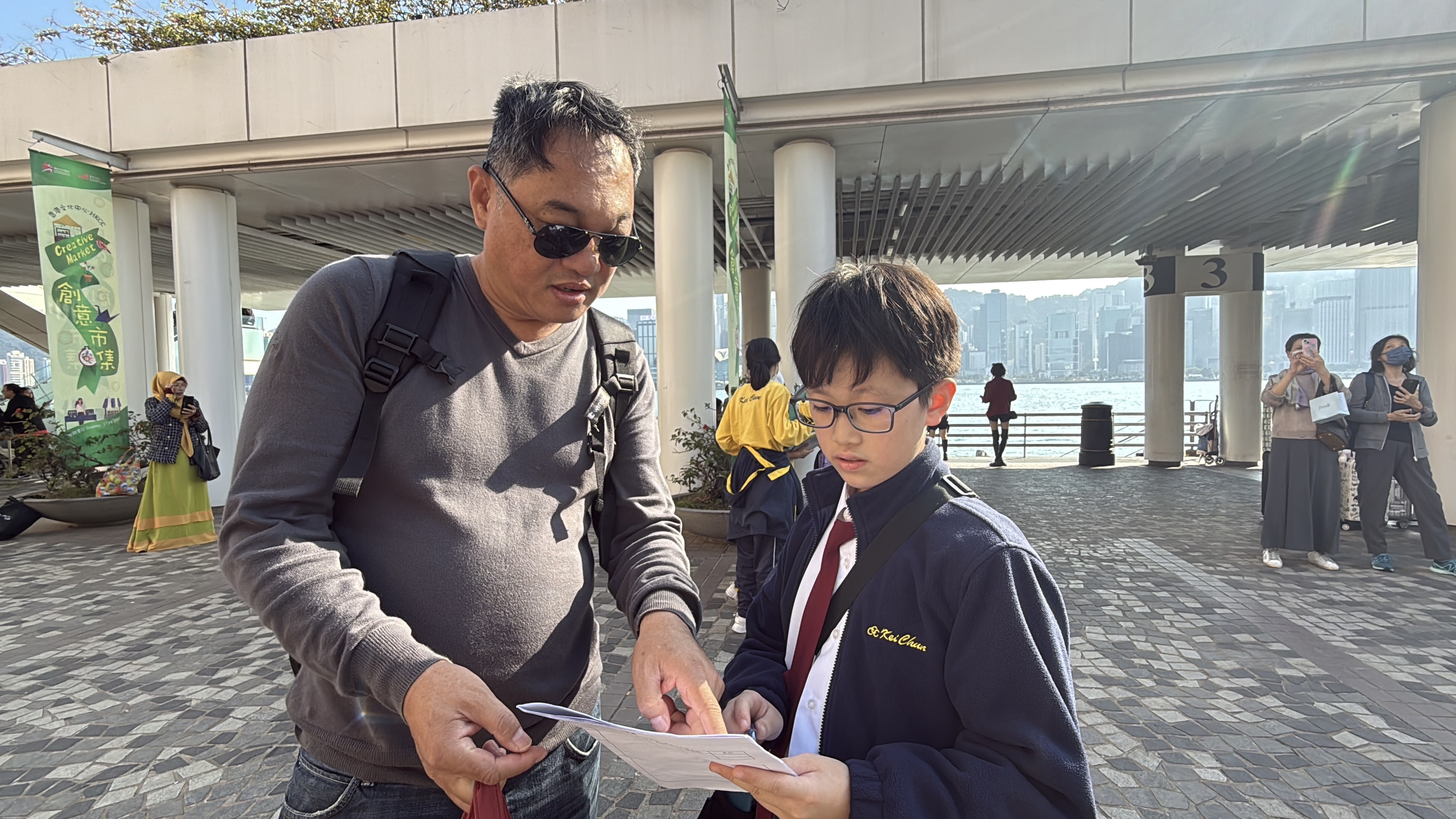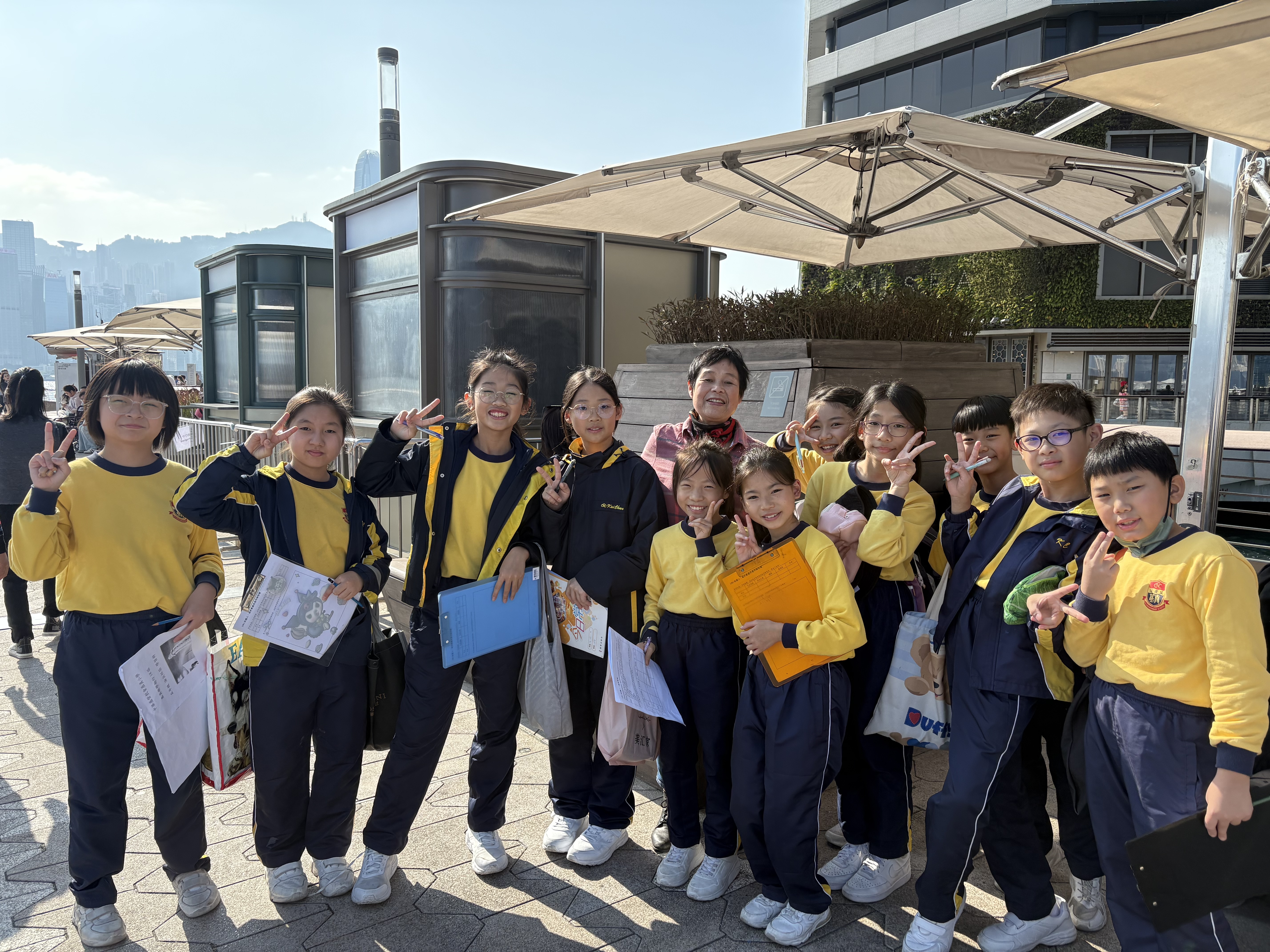 | 五年級同學在尖沙咀海旁採訪遊客 | 我能有自信地使用普通話採訪遊客,一點兒也不緊張 |