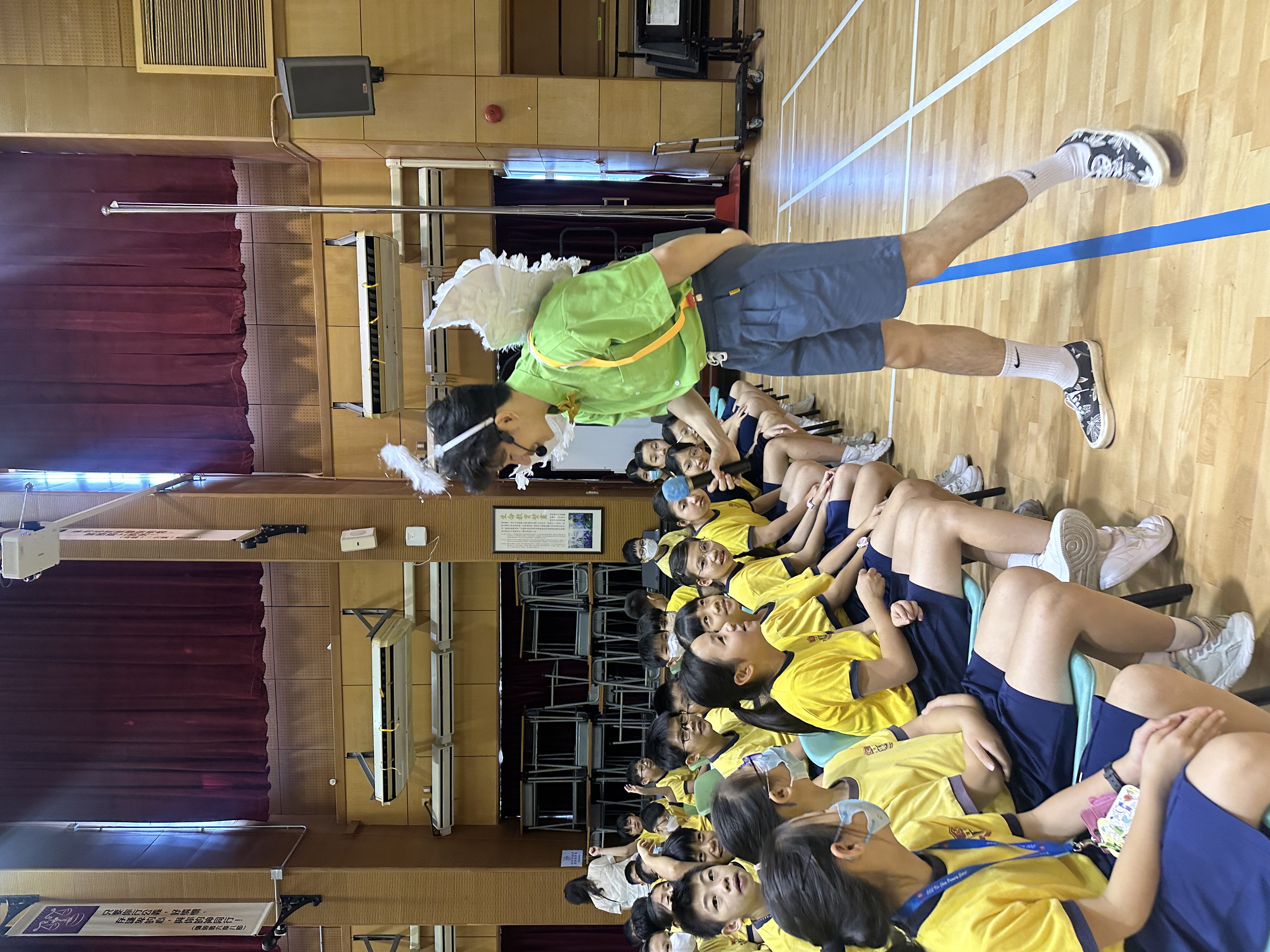 | 四年級的學生在積極回答主持人的提問 | 五年級的學生大使在試後活動中協助開展攤位遊戲活動 |