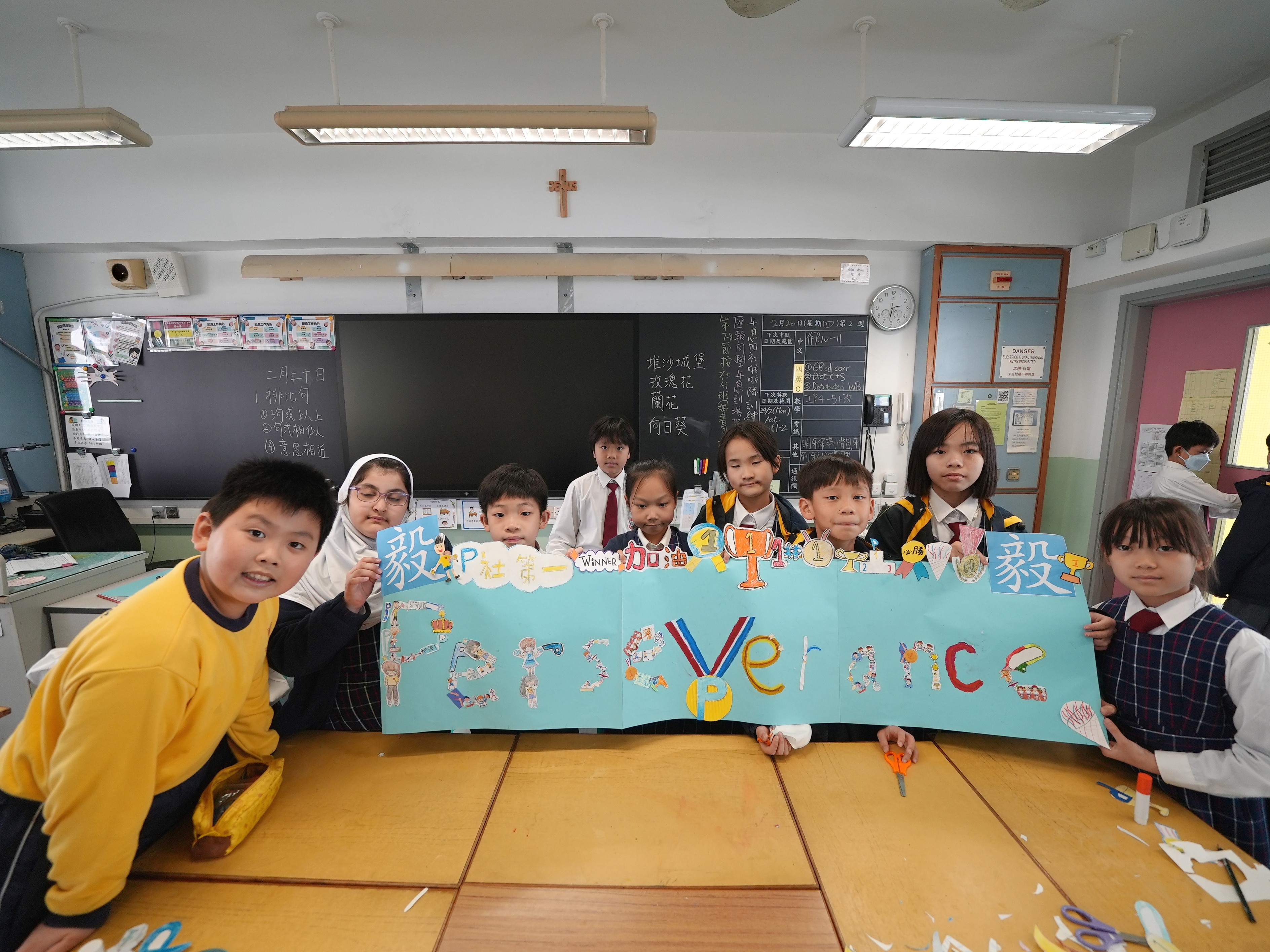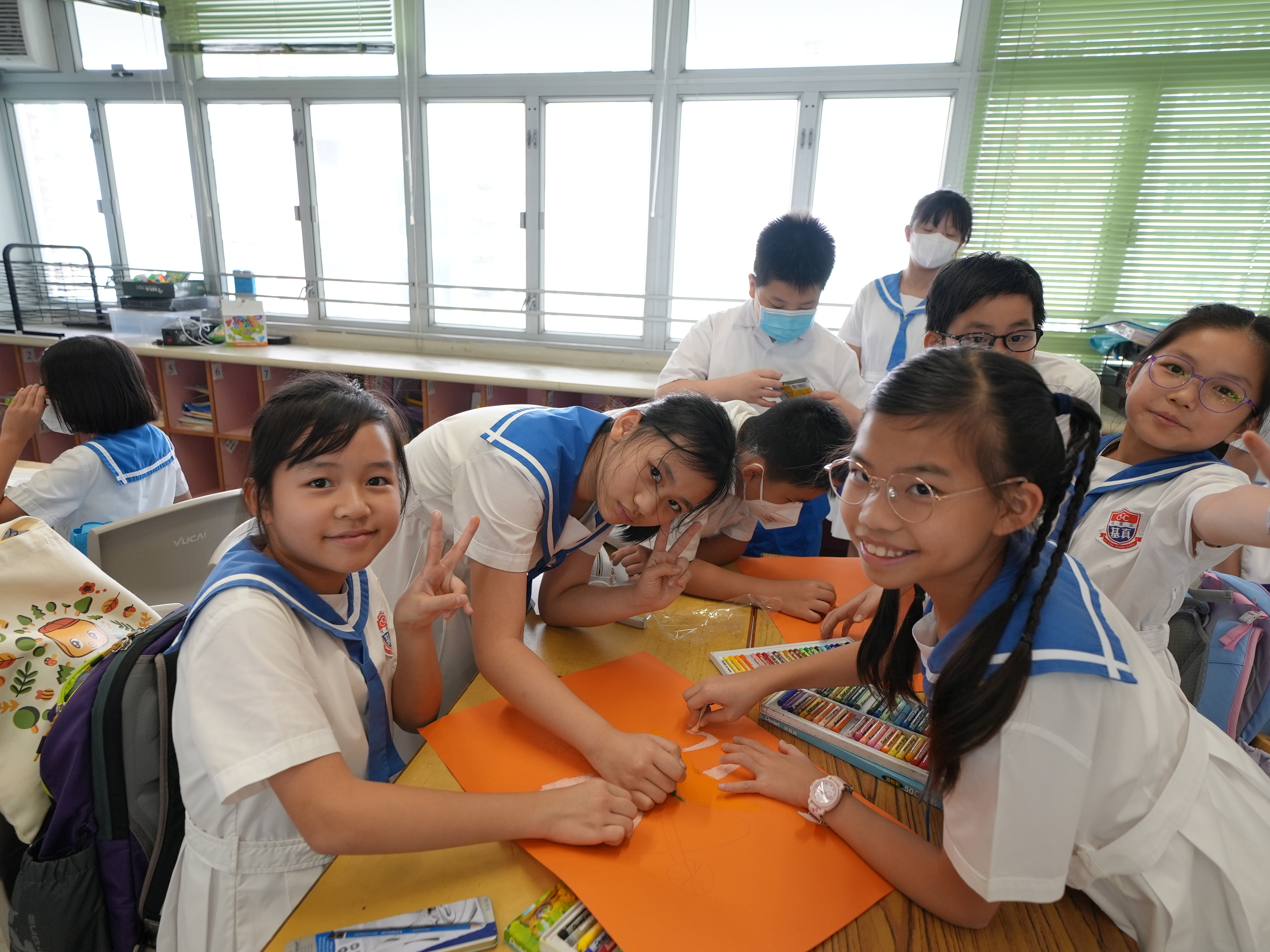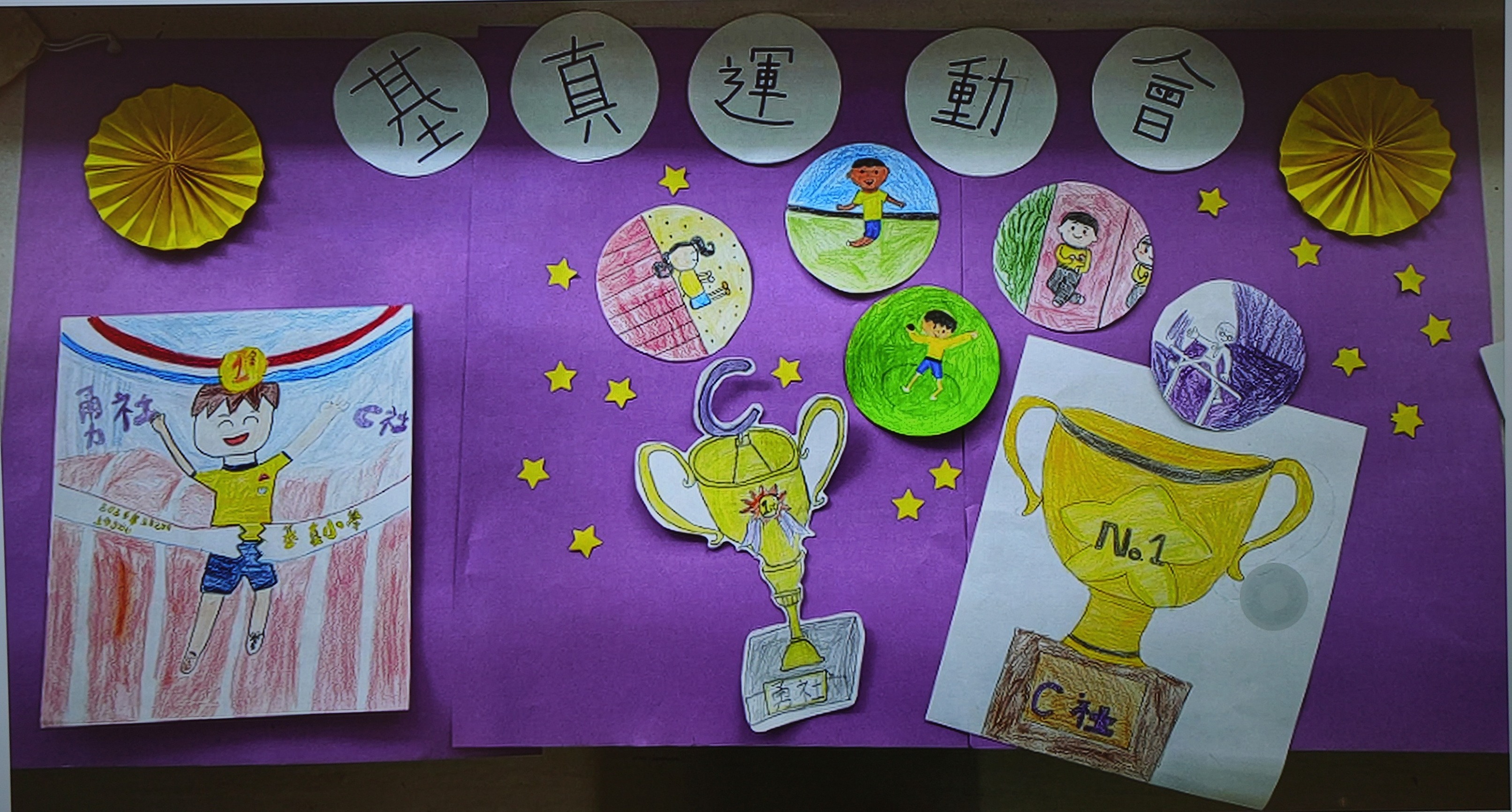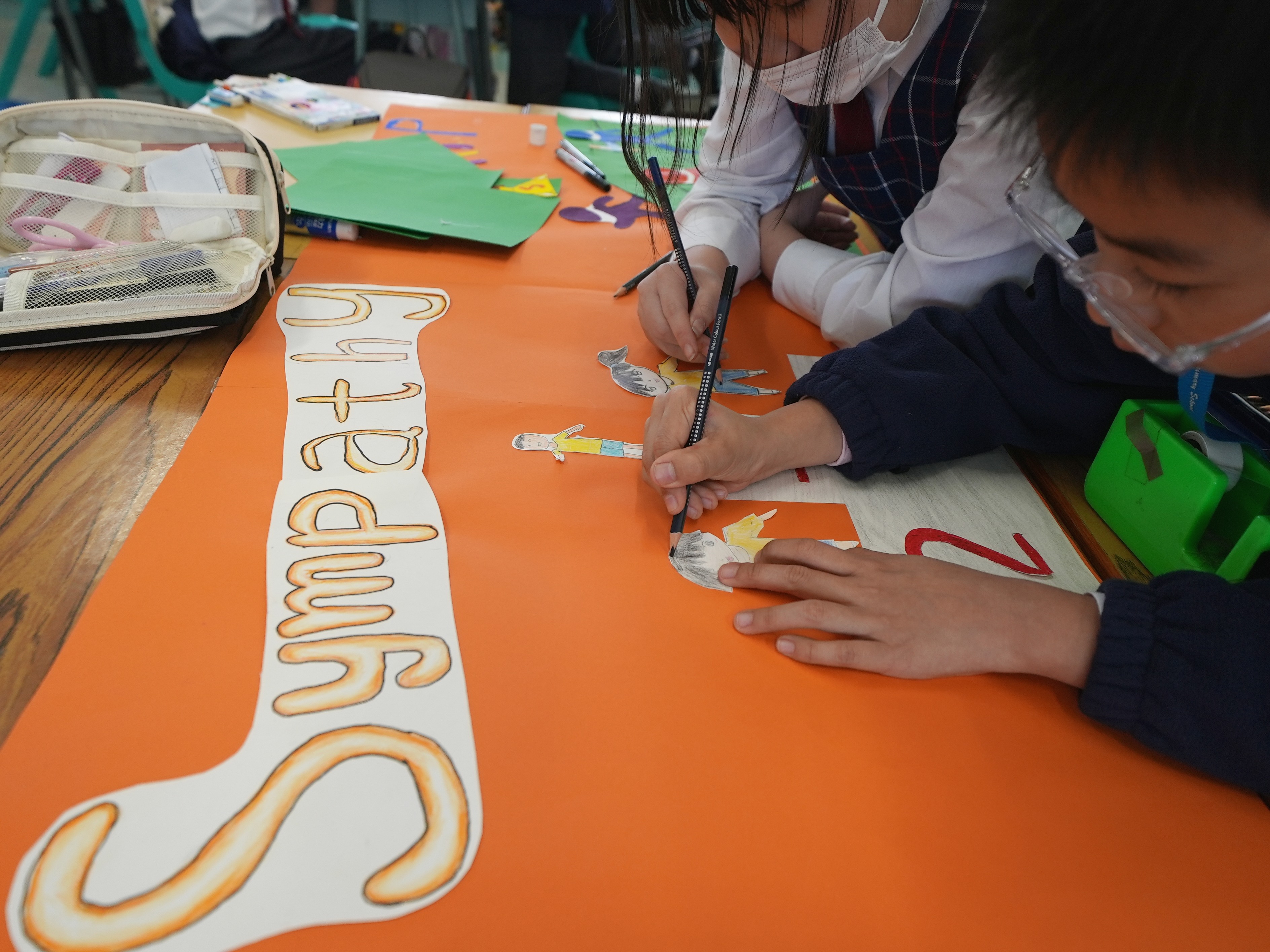 於社際打氣比賽中,各社同學一同製作打氣物品